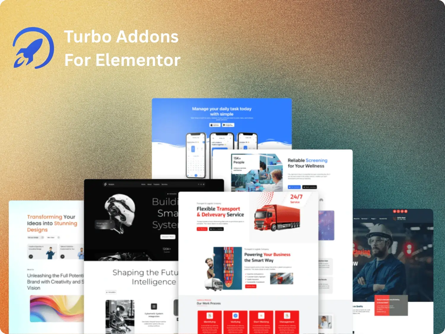 Turbo Addons is your all-in-one toolkit for Elementor — featuring powerful widgets, WooCommerce support, a drag-and-drop Header & Footer Builder, and 100+ ready templates. Build fast, responsive, and professional WordPress websites with ease.