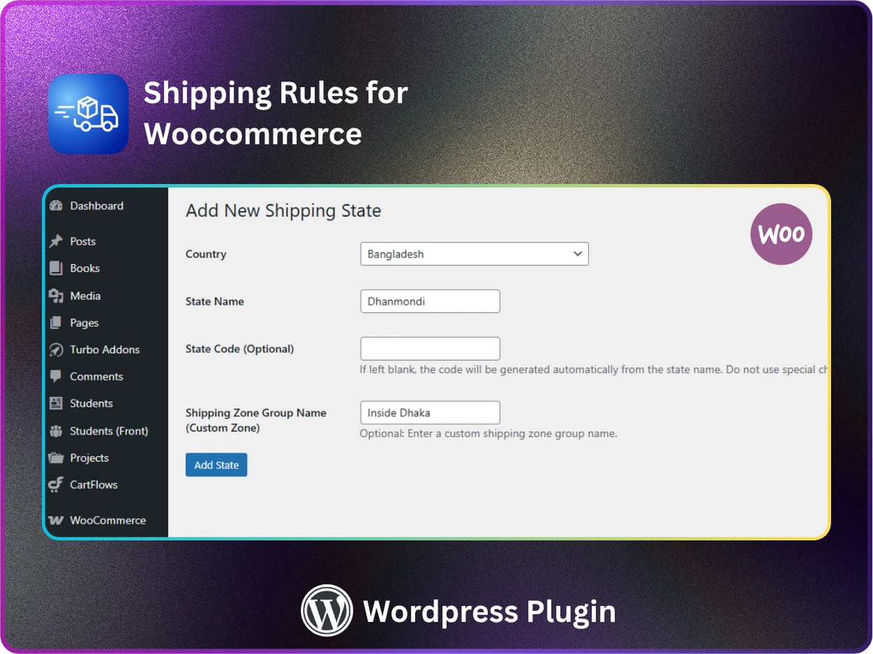 This is especially useful if your business operates in regions that are not covered by WooCommerce’s default state lists — such as custom districts in Bangladesh, provinces in African countries, or extra regions within the United States — and also requires advanced shipping methods based on weight and product categories.